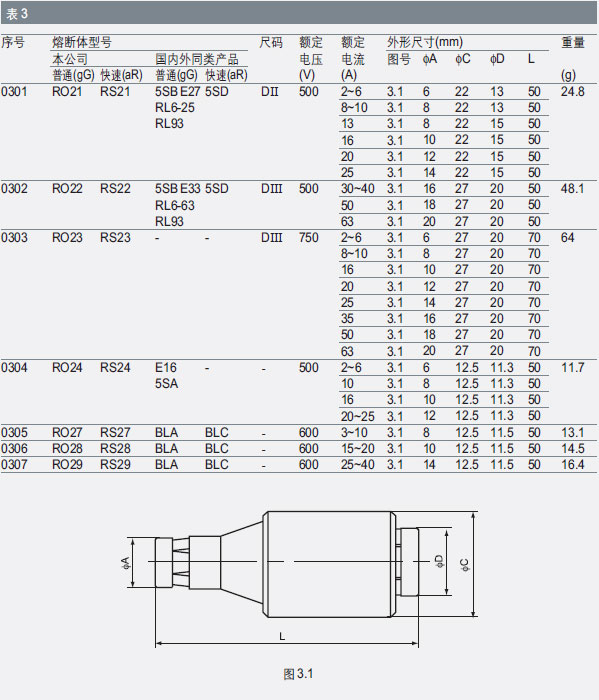 圆筒帽形熔断体