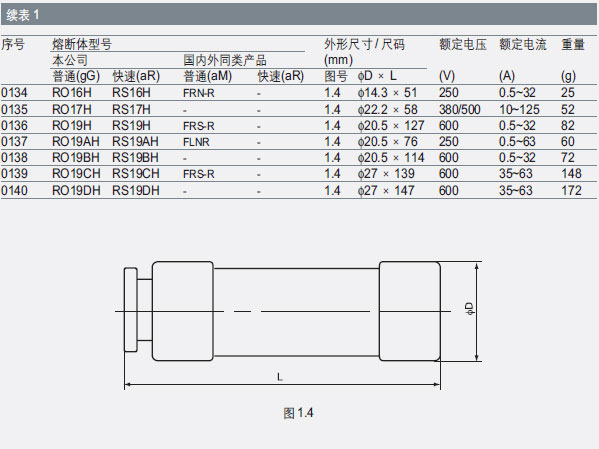 圆筒帽形熔断体